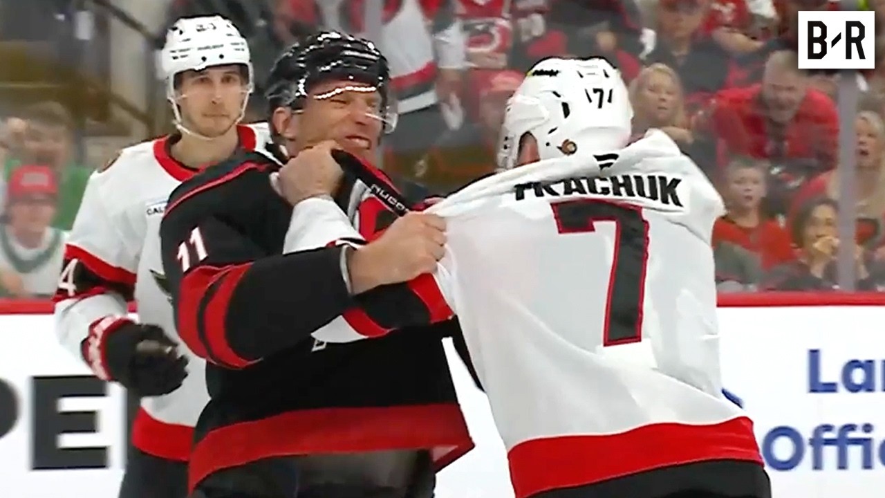 record starting lineups will be brought to you by Infiniti. The 2026 Stanley Cup playoffs are underway as Brandon Bllandina drops the puck. Ottawa is the better. We have a fight on the opening face off. Kachchuck Stall exchanging blows and down we go. 3 seconds into the playoffs. Brady Kachchuck and Jordan Stall, the two captains, have set the tone. Well, that is one way to start the Stanley Cup playoffs off with a bang. Both captains dropping the gloves. You can see Kachchuck here. They're talking to each other right there. You want to go? Hey, let's do this. You know what