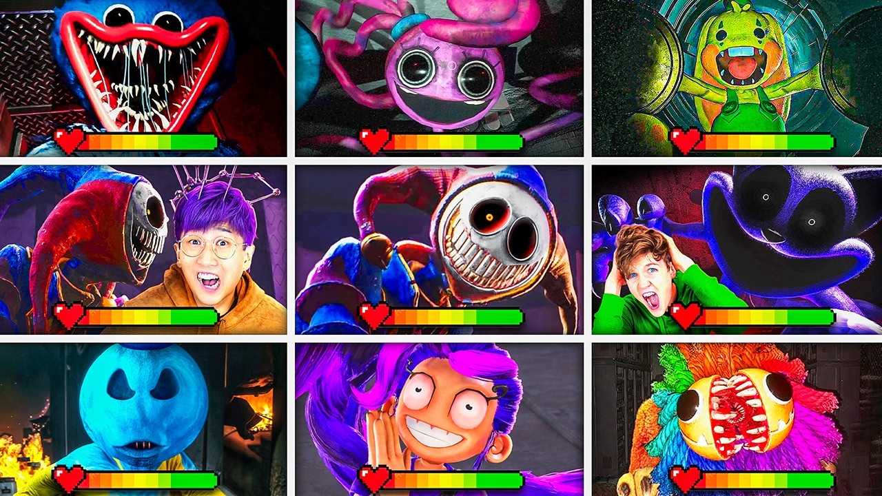 THIS IS ALL POPPY PLAYTIME BOSSES AND deaths with health bars. We are going to see all Poppy Playtime boss deaths from chapters 1, 2, 3, FOUR, AND FIVE WITH HEALTH BARS. WE'LL see HuggyWuggy in chapter 1, Mommy Longlegs in chapter 2, kidnap in chapter 3, Joey in chapter 4, and the prototype and Lily Love Braids in chapter 5, and way more. And we'll see all the characters health bars in every cut scene. So we know which CHARACTERS DIED AND WHICH ACTUALLY SURVIVED with a TINY BIT OF HEALTH. OH, YOU TOOK DAMAGE WHEN he's still alive. Are you ready to see all Poppy Playtime bosses and deaths but with health bars? Let's go.