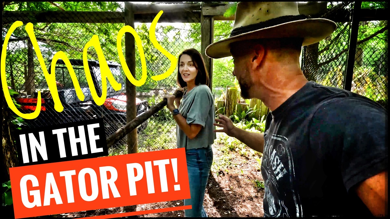 All right. Well, I'm with my beautiful bride, and this is really a big deal. This is I hate this. This is the first time we're going to feed alligators together. She's actually going to hold the uh camera. This is normally the part of the tour where I walk away cuz I get very nervous when you go in there. Well, we got to feed two raccoons to each of our alligators. Can I just ask you something? Yeah. What's the plan if they start eating you? Well, call 911 and get your cell phone. Okay, I have my cell phone. Oh my god. They're not going to