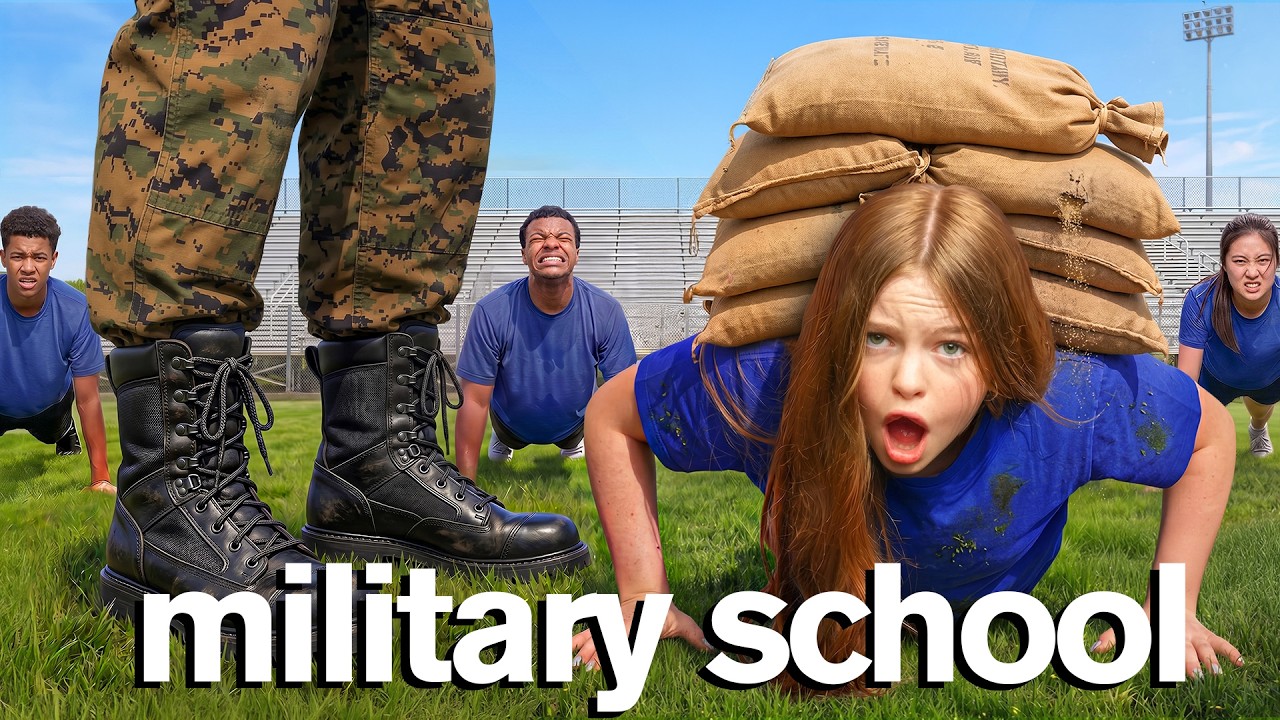 school, which is the world's strictest school, as you can tell by your uniforms. Yeah. Dad, what are these pants? Did you want to get any other cute outfit? I think I took her shirt. You have one minute. Each team has to nominate one person. Go. Salish, wait. What? Okay. All right. Salish and Markell, sit down. Oh, no. Your teacher is Miss Karen, and she's going to explain to you your challenge. Good luck. The most important rule at this school. No laughing. This strictest school is modeled after a super serious preparatory school is all about teaching the students how to follow rules. The challenge is the eye contact trend from Tik Tok. You'll take a sip of water and the first person to laugh