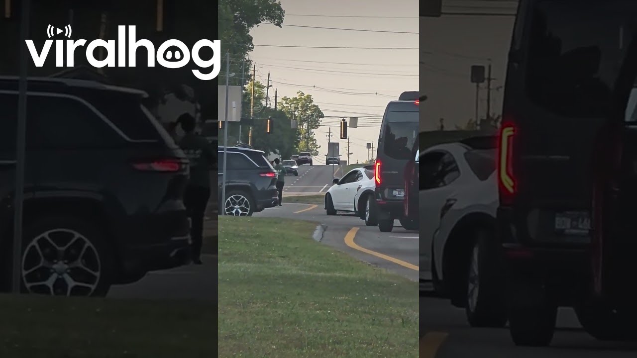 You'd think somebody would like call the law or something. Maybe they could come out here and wrangle and stop traffic. I don't like people who don't try. Where the [__] did it come from? Well, like I said, I mean, it just got probably got out from somebody's, you know, uh, fence. They do that. Think they got him? I can't see. Well, they shouldn't have been running up against it. Maybe they should have they you know what Oh, there he is. He's up there on the side. Good, good, good. Woo. That ain't the first time this has happened. A bunch of them got loose from Dollywood one time. A whole gang of Thank god they caught him.