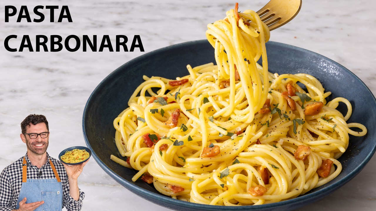 it's time to give it a toss and let it all come together. Your pasta carbonara's cheese should be fully melted and look lovely and creamy. I can see that all the cheese is melting away. If this isn't looking creamy and silky and luscious, add an additional 1/4 of a cup of pasta water in a tablespoon at a time while mixing. You don't want it to be watery, but you don't want it to be dry. It should be just right. And this looks perfect. Serve your pasta carbonara immediately and garnish with a little bit of parsley and flake sea salt if desired. And just like that, your pasta carbonara is ready to enjoy.