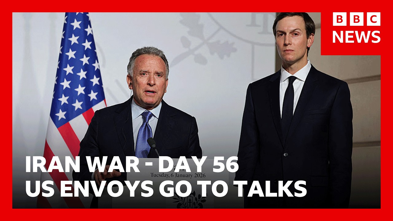 Hello, I'm Gita Guramuthi. This is the Iran War today, our daily briefing bringing you up to date with all you need to know on day 56 of the USIsrael war with Iran. Over the next 24 minutes, we'll be live with our teams of correspondents around the world. Well, let's start with some of today's key developments. And President Trump is sending his special envoys Steve Rickoff and adviser Jared Kushner to Pakistan for fresh peace talks. Well, that comes as Iran's foreign minister is expected to arrive in Pakistan later today. A warning from the US defense secretary that the blockade of the Strait of Hormuz is growing and going global as he calls on Iran to make a wise deal. A leaked Pentagon email suggests America may rethink its position on Britain's claim