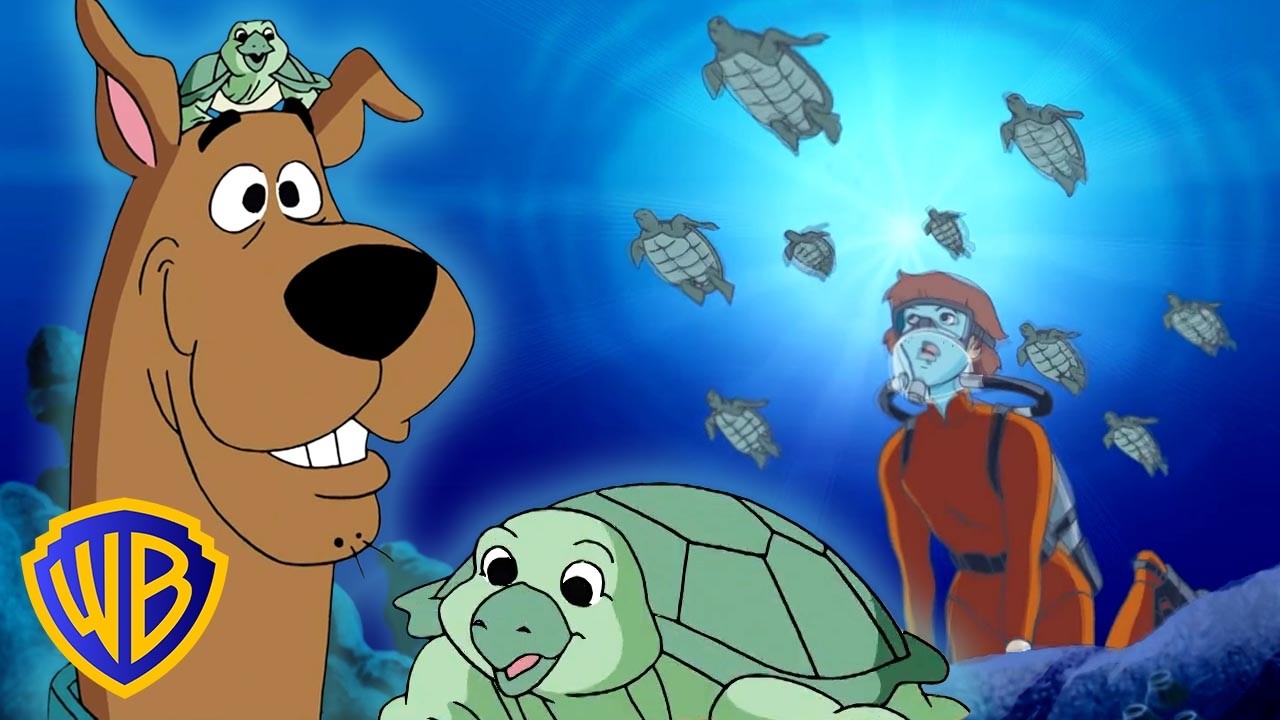 Get it, Scoob? Hey, look. The outer layer of the creature is made of rubber. Right. Inside is a miniature submarine with the same kind of water propulsion as our scuba bikes. That's why it made the same noise. Crunchy? Okay, okay, I got about as far as the monster is a mini sub before you like totally lost me. It's simple. Crunchy is an ecology extremist. He wanted to protect the turtles' mating grounds, and he used the monster to do it. Hey, I thought Professor Ravenmain was the big turtle lover. I am. But no legitimate member of the conservation community would condone this dangerous and irresponsible behavior. Besides, we knew the Mora couldn't be the monster. She gets seasick.