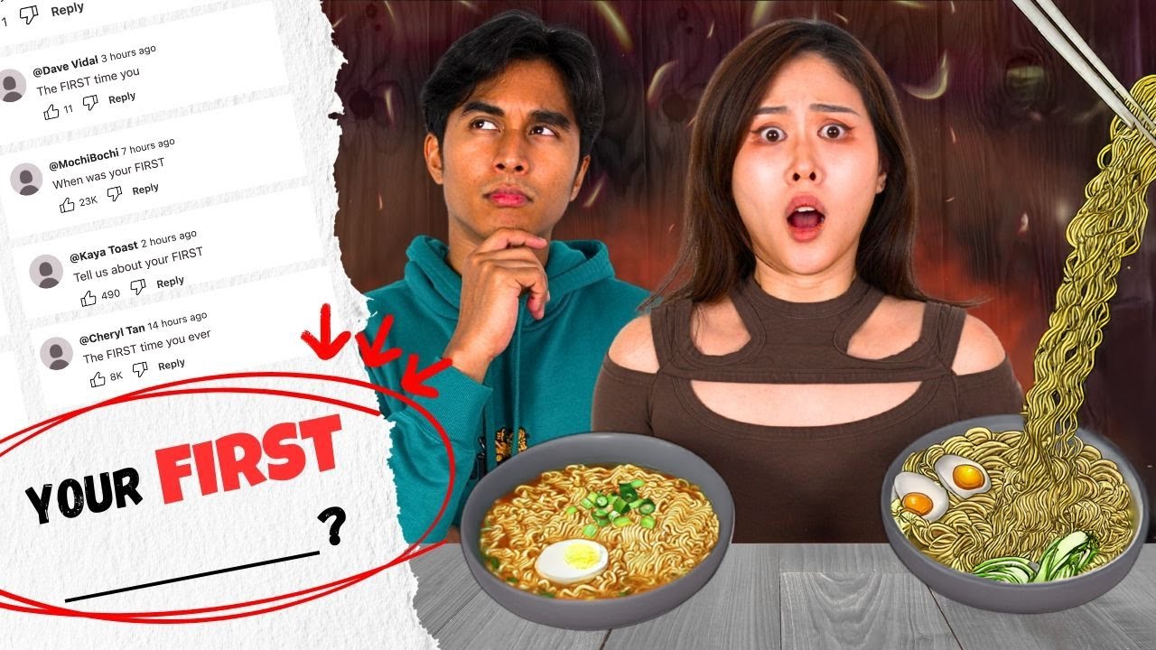 Hey emojis, previously I asked you guys to share with me your first time experiences like first time traveling alone, first time having a crush, first time peeing yourself in public, I don't know. I've compiled all your questions and experiences in this box here and we're going to be answering them together. While we're sharing about our first experiences, we'll also be trying your VIRAL MAGGIE HACK. ARE YOU READY? I'm ready. Let's go. Time for the side of Maggie. Wait, what's that? You hear a bell? That means it's time for our [screaming] first dish of the day.