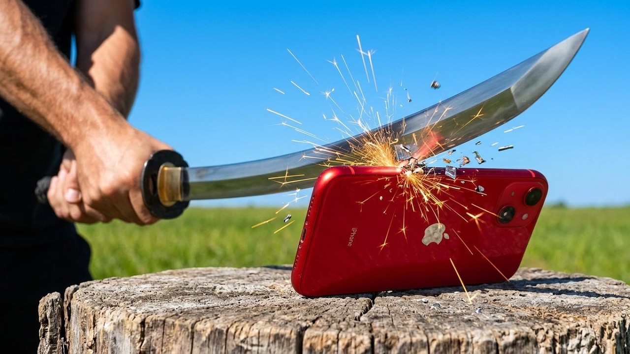 The sword. You think both are losing? Oh, they're both cooked. It's It's straight up a matter of which one loses the least. I guess we could have no winners if they both lose. I've seen some phone cases that have been dropped from orbit and survive. So, I think maybe the phone case would win, but that's supposed to be able to stop saw blade. Hopefully, we're going to have to test it out. What is a katana if not just a single bladed saw blade?